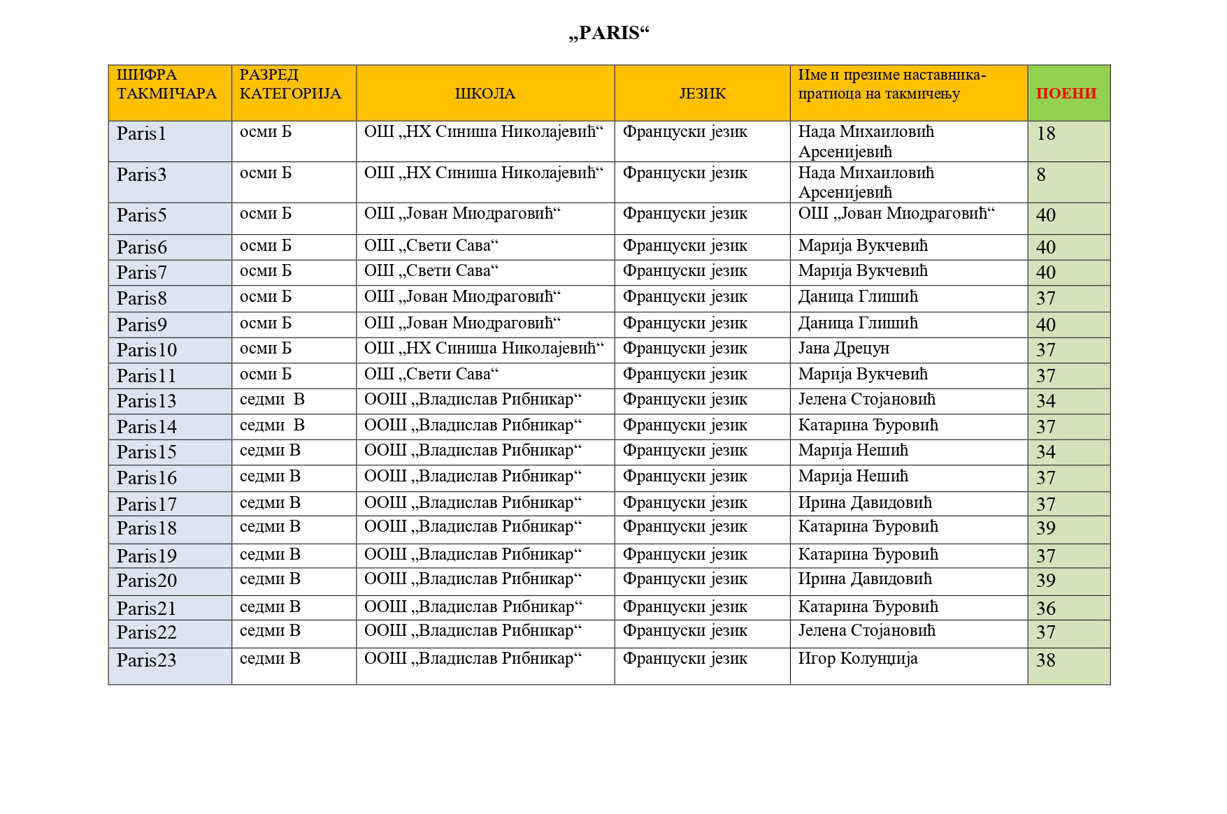 Такмичари „Paris“
