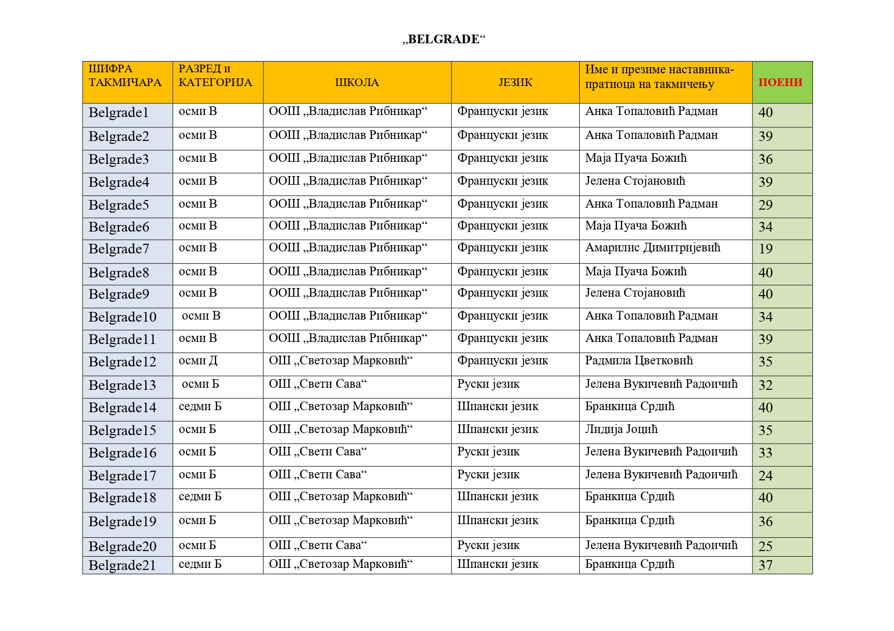 Такмичари „Belgrade“
