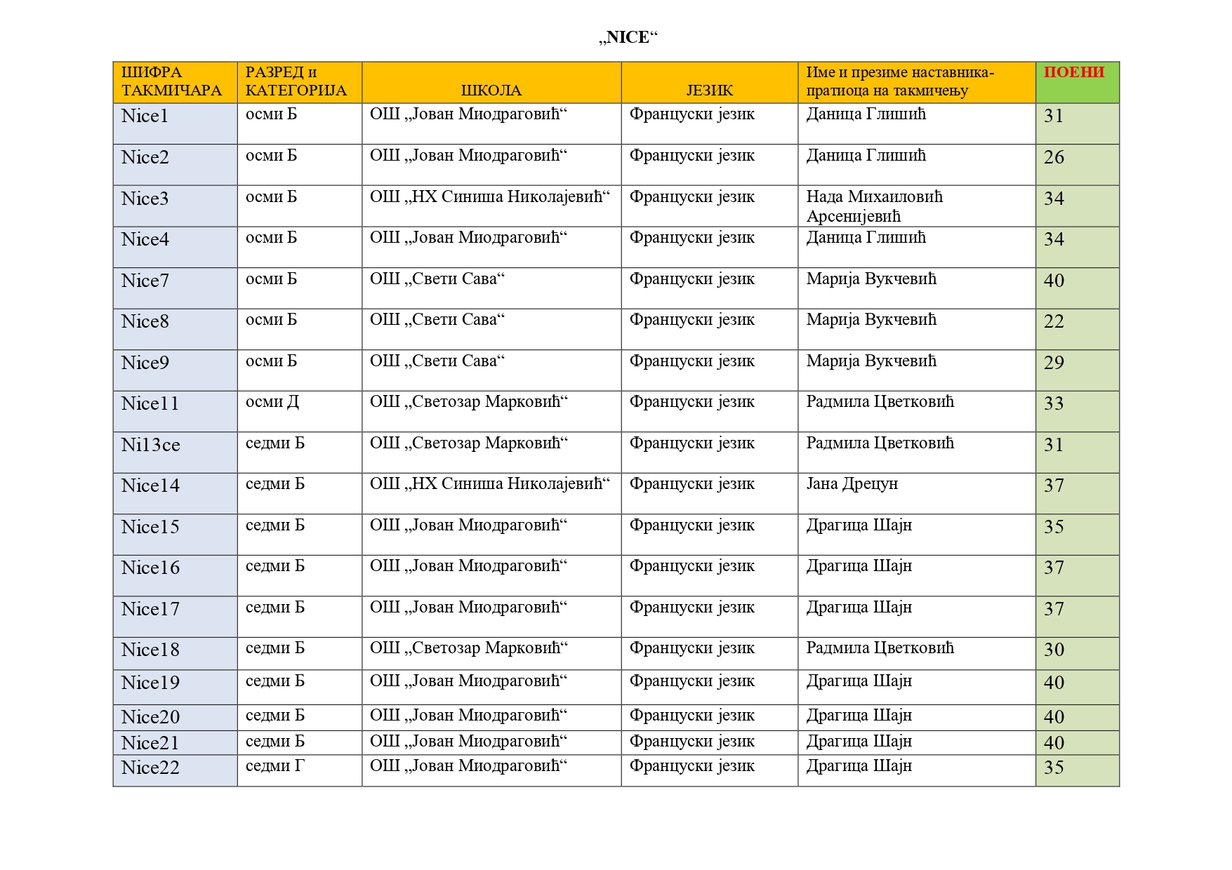 Такмичари „Nice“