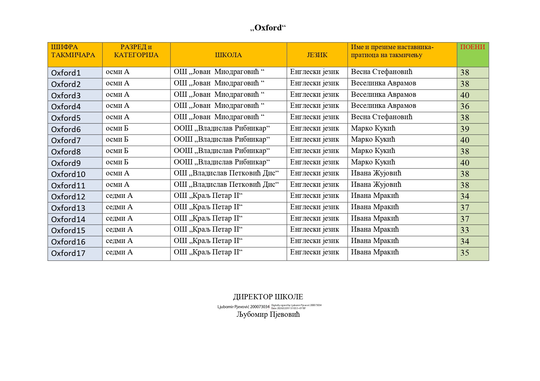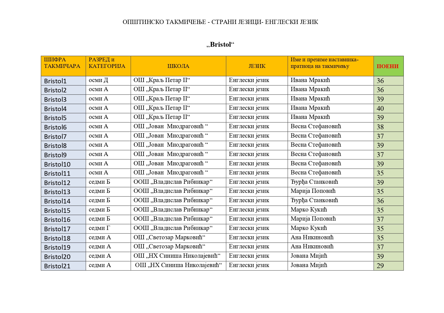 Резултати општинског такмичења из страних језика