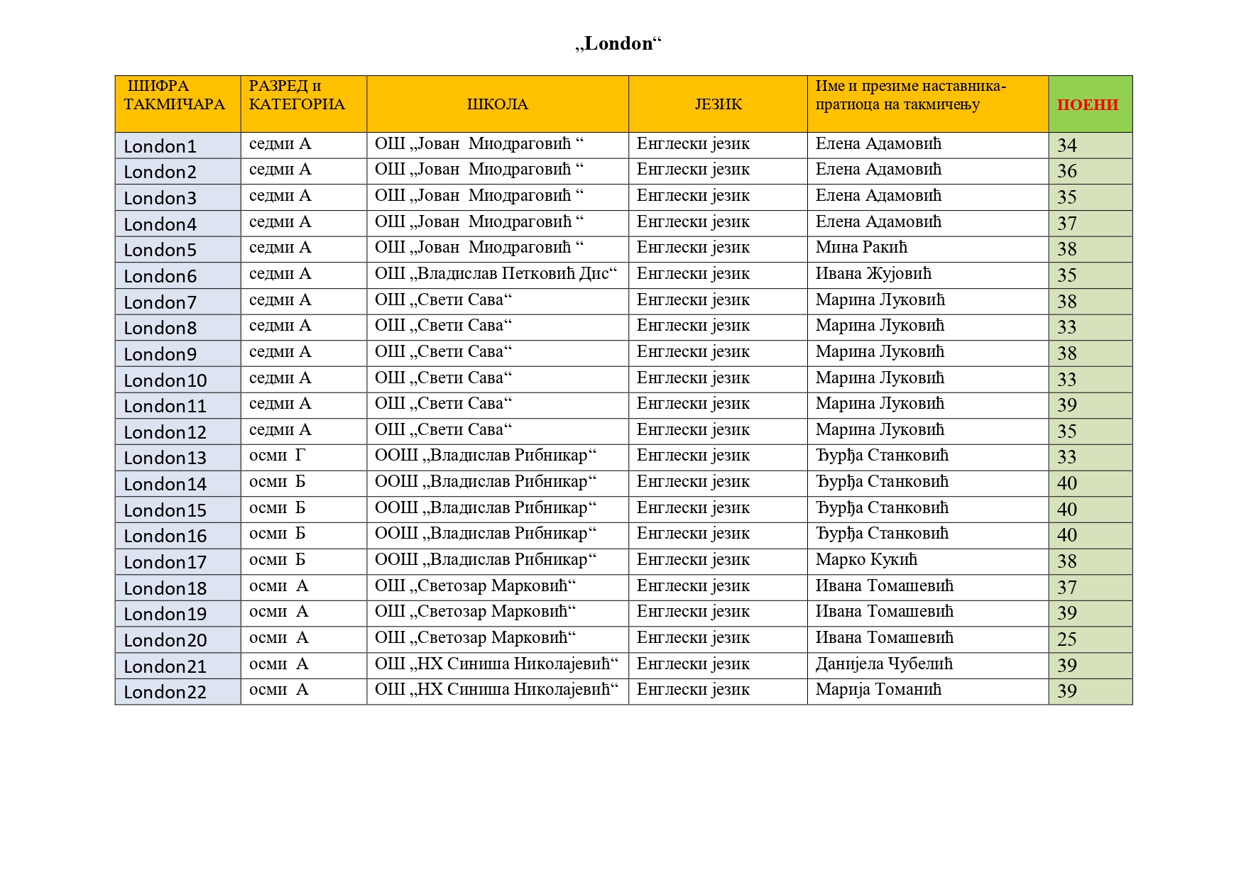 Такмичари „London“