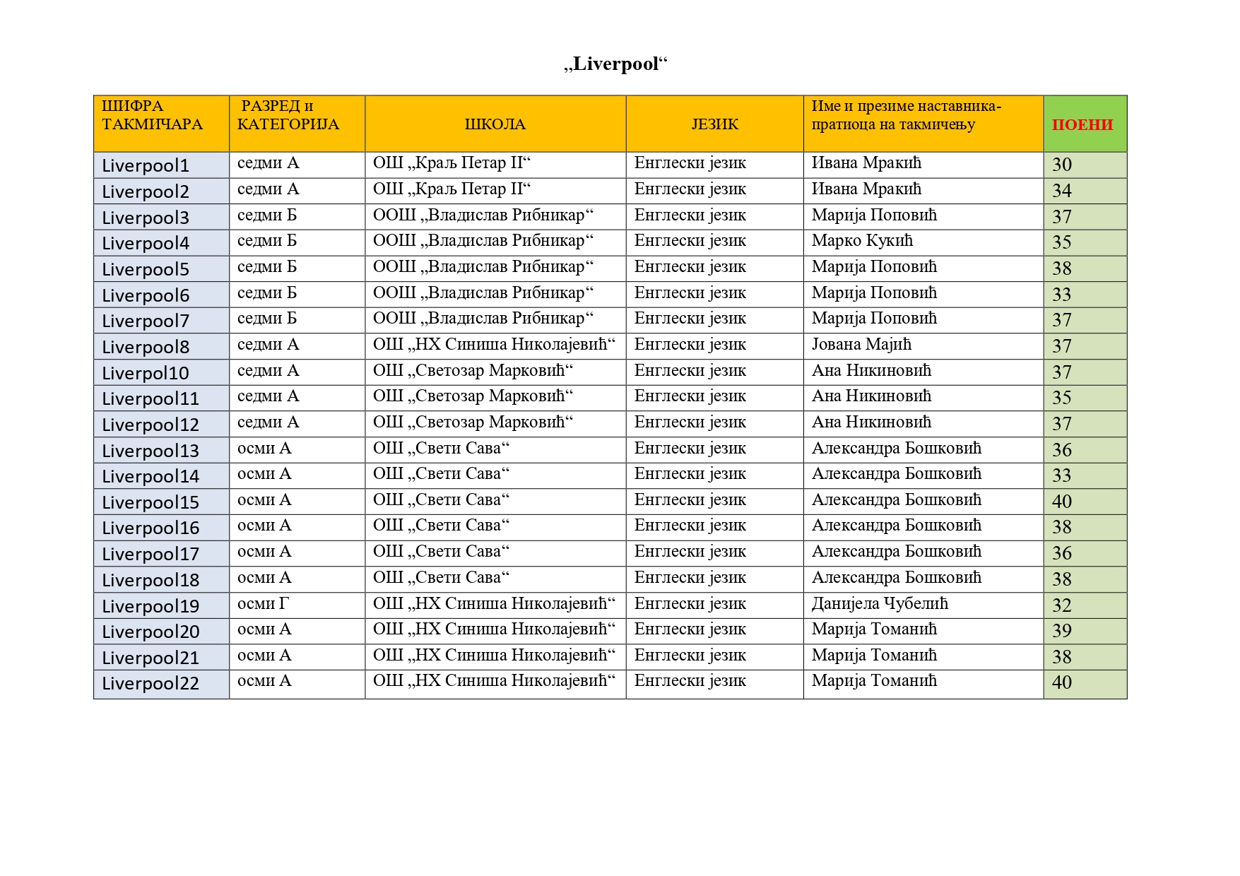 Такмичари „Liverpul“